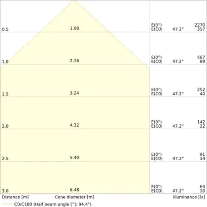 Un angle de diffusion est également appelé angle de rayonnement et indique l'angle du faisceau lumineux provenant d'une source lumineuse. Plus l'angle de diffusion en degrés (D) est petit, plus le faisceau est étroit.