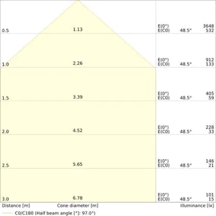 Un angle de diffusion est également appelé angle de rayonnement et indique l'angle du faisceau lumineux provenant d'une source lumineuse. Plus l'angle de diffusion en degrés (D) est petit, plus le faisceau est étroit.