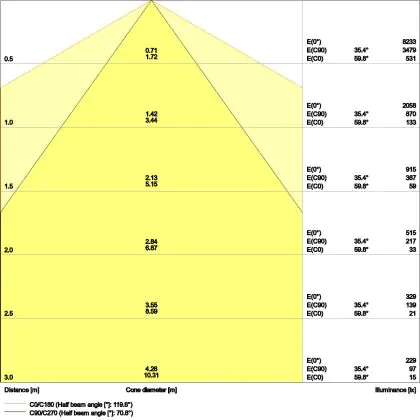 Un angle de diffusion est également appelé angle de rayonnement et indique l'angle du faisceau lumineux provenant d'une source lumineuse. Plus l'angle de diffusion en degrés (D) est petit, plus le faisceau est étroit.