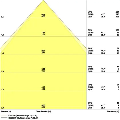 L'indice d'éblouissement unifié (UGR) indique dans quelle mesure la lumière d'un produit est éblouissante. Cette valeur varie d'une application à l'autre et doit être conforme aux normes européennes (EN 12464-1). Une faible valeur UGR signifie un faible facteur d'éblouissement. Pour les bureaux et les écoles, l'éclairage avec une valeur UGR < 19 est obligatoire, et pour les espaces ouverts, une valeur UGR < 22 est obligatoire.