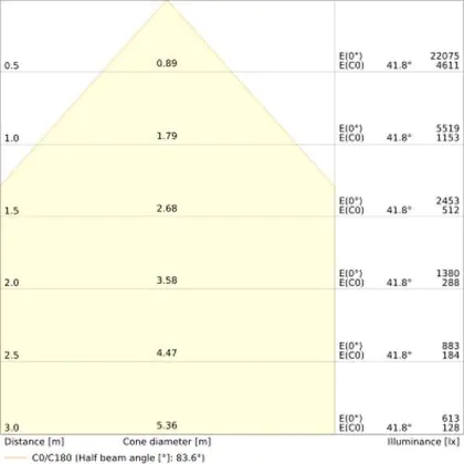 Un angle de diffusion est également appelé angle de rayonnement et indique l'angle du faisceau lumineux provenant d'une source lumineuse. Plus l'angle de diffusion en degrés (D) est petit, plus le faisceau est étroit.