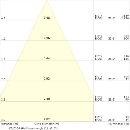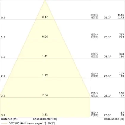 Un angle de diffusion est également appelé angle de rayonnement et indique l'angle du faisceau lumineux provenant d'une source lumineuse. Plus l'angle de diffusion en degrés (D) est petit, plus le faisceau est étroit.