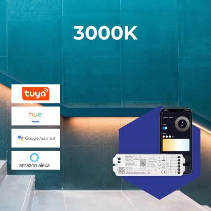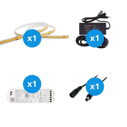 Noxion Rubans LED Naga 5 Mètre Ensemble complet - Smart Wifi - 24V - 320LEDs/m - COB - 8W/m - 930 Blanc Chaud | 8mm - IP20 - Meilleur Rendu Des Couleurs