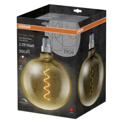 Osram Vintage 1906 LED E27 Globe Filament Dorée 200mm 5W 300lm - 820 Blanc Très Chaud | Dimmable - Équivalent 40W