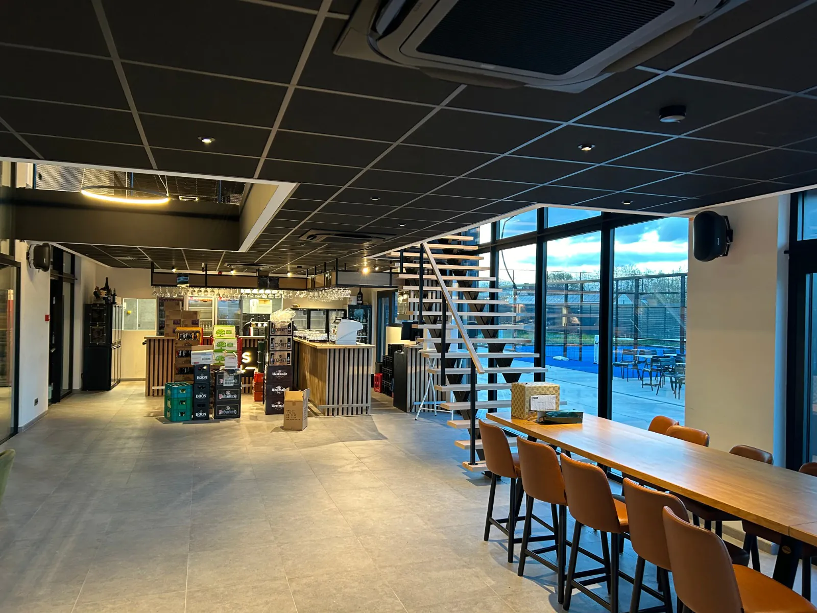 Le projet du complexe sportif a commencé en avril 2023. Le client avait plusieurs conditions et demandes envers son projet. D’une part, il fallait pouvoir apporter un éclairage approprié à chaque espace du complexe sportif. Il fallait installer un éclairage adapté à l’espace bar, les terrains de padel intérieurs, les vestiaires et les toilettes.