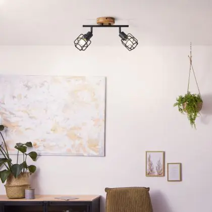 Brilliant Gwen Plafondlamp Metaal Hout Zwart | Geschikt voor 2x E14