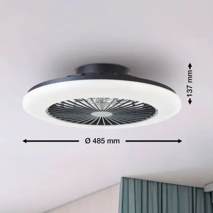 Brilliant Salerno Plafondventilator Kunststof Metaal Zwart 36W 4700lm - 830-865 CCT+RGB | 485mm - Afstandsbediening Dimbaar