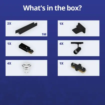 | Fabrikantnaam | Complete Straight 2-meter 1-Phase Track Set Black incl. 4x Spot fixture + GU10 2700K 3W Dim – 2x 1 M | |