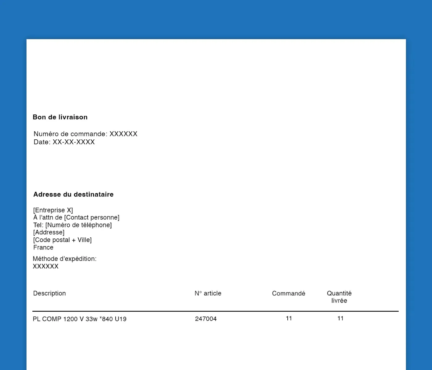 Bon de livraison neutre
