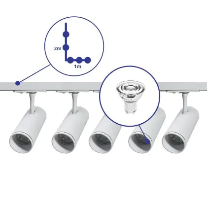 | Nom du fabricant | Complete L shaped 1-Phase Track Set White incl. 5x Spot fixture + GU10 2700K 3W Dim – 1 x 2 meters i | |