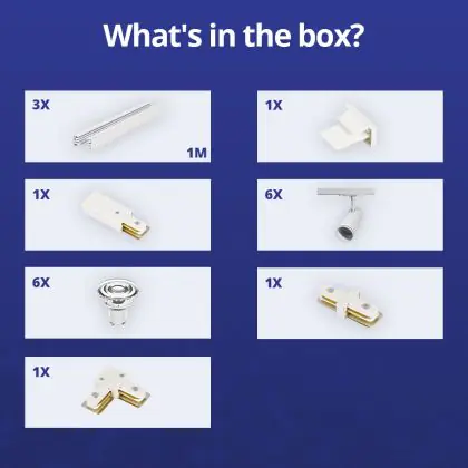 Bright Choice Ensemble complet Rail Monophasé Rail L 1 x 2 Mètre Blanc | incl. 6x Spot + GU10 2700K 3W Dimmable + Embout, Connecteur d’Alimentation et L -Connecteur