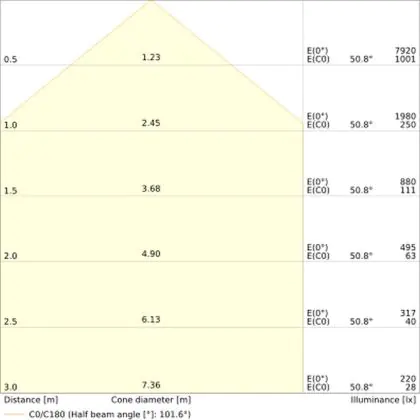 Un angle de diffusion est également appelé angle de rayonnement et indique l'angle du faisceau lumineux provenant d'une source lumineuse. Plus l'angle de diffusion en degrés (D) est petit, plus le faisceau est étroit.