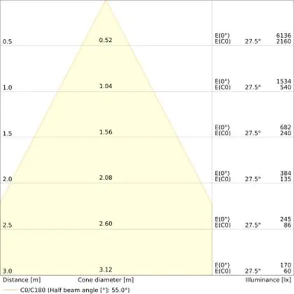 Un angle de diffusion est également appelé angle de rayonnement et indique l'angle du faisceau lumineux provenant d'une source lumineuse. Plus l'angle de diffusion en degrés (D) est petit, plus le faisceau est étroit.