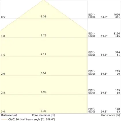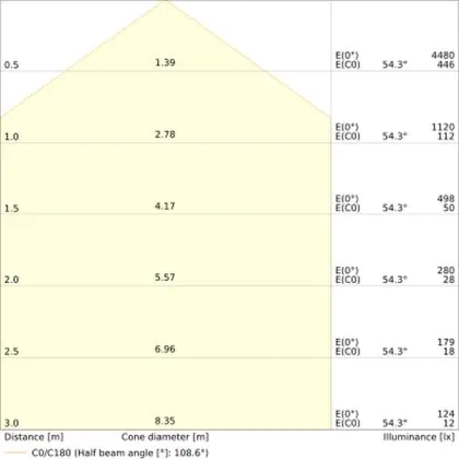 Un angle de diffusion est également appelé angle de rayonnement et indique l'angle du faisceau lumineux provenant d'une source lumineuse. Plus l'angle de diffusion en degrés (D) est petit, plus le faisceau est étroit.