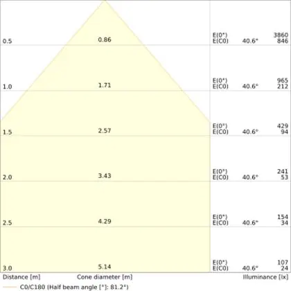 Un angle de diffusion est également appelé angle de rayonnement et indique l'angle du faisceau lumineux provenant d'une source lumineuse. Plus l'angle de diffusion en degrés (D) est petit, plus le faisceau est étroit.