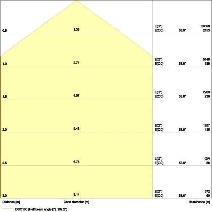 Un angle de diffusion est également appelé angle de rayonnement et indique l'angle du faisceau lumineux provenant d'une source lumineuse. Plus l'angle de diffusion en degrés (D) est petit, plus le faisceau est étroit.