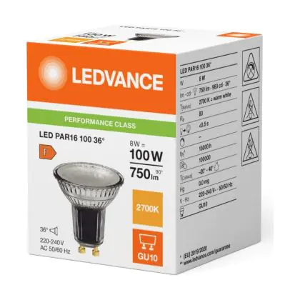 Ledvance LED PAR16 GU10 Réflecteur 8W 750lm 36D - 827 Blanc Très Chaud | Équivalent 80W