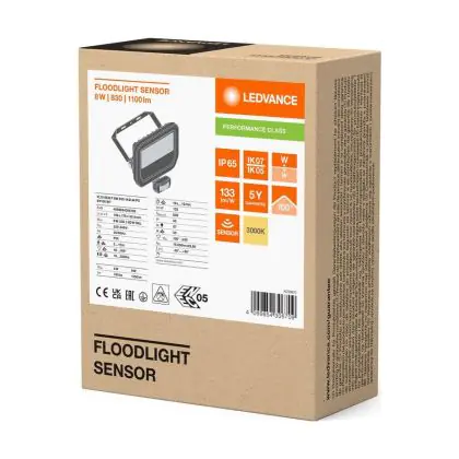 Ledvance Projecteur LED Aluminium Blanc 8W 1100lm 100D - 830 Blanc Chaud | IP65 - Détecteur De Mouvement Et De Lumière - Symétrique