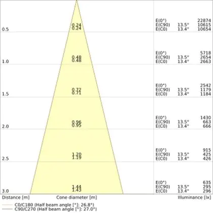 Un angle de diffusion est également appelé angle de rayonnement et indique l'angle du faisceau lumineux provenant d'une source lumineuse. Plus l'angle de diffusion en degrés (D) est petit, plus le faisceau est étroit.