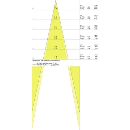 Un angle de diffusion est également appelé angle de rayonnement et indique l'angle du faisceau lumineux provenant d'une source lumineuse. Plus l'angle de diffusion en degrés (D) est petit, plus le faisceau est étroit.