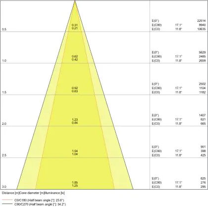 Un angle de diffusion est également appelé angle de rayonnement et indique l'angle du faisceau lumineux provenant d'une source lumineuse. Plus l'angle de diffusion en degrés (D) est petit, plus le faisceau est étroit.