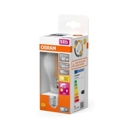 Osram Classic LED E27 Poire Filament Claire 7.3W 806lm - 827 Blanc Très Chaud | Détecteur De Mouvement Et De Lumière - Équivalent 60W
