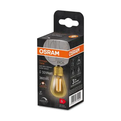 Osram Vintage 1906 LED E27 Edison Filament Dorée 4.8W 360lm - 822 Blanc Très Chaud | Dimmable - Équivalent 40W