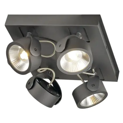 SLV Kalu Quadruple Mur et Plafonnier Aluminium Noir Carré 60W 4000lm - 830 Blanc Chaud | Dimmable